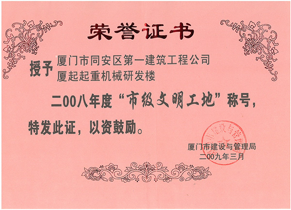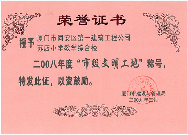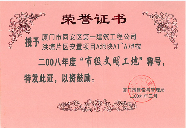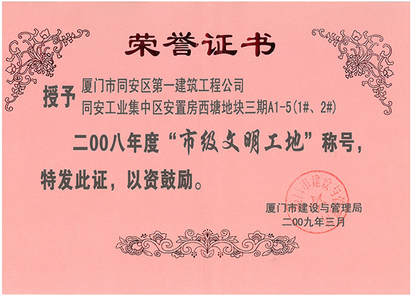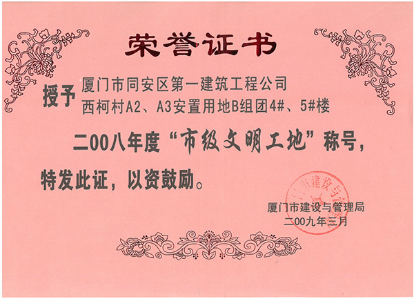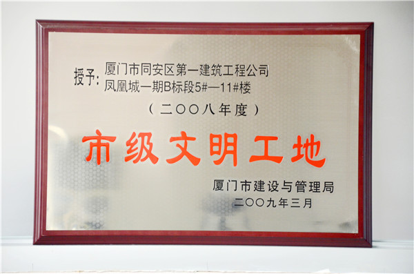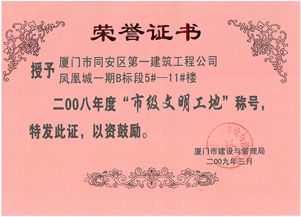 2008年度“市級文明工地”鳳凰城一期B標段5#-11#樓