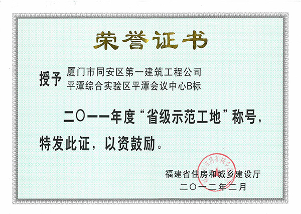 2011年度“省級(jí)示范工地”公園道1號(hào)